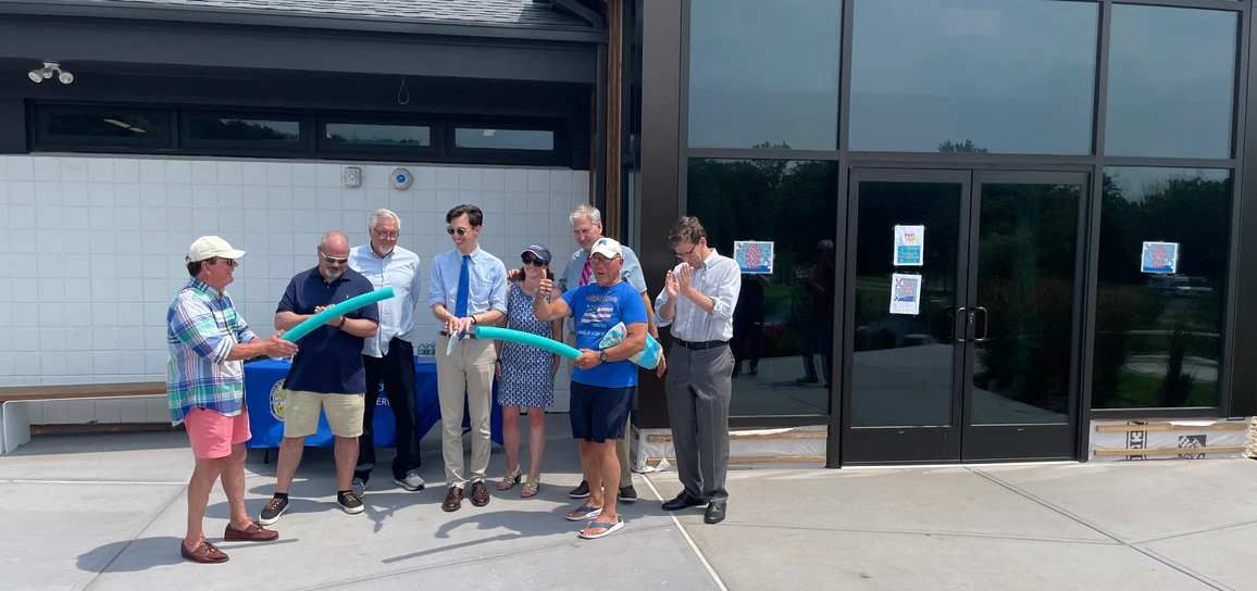 A ribbon-cutting (aka pool noodle-cutting!) ceremony was held for the Veteran’s Memorial Park Bathhouse project.